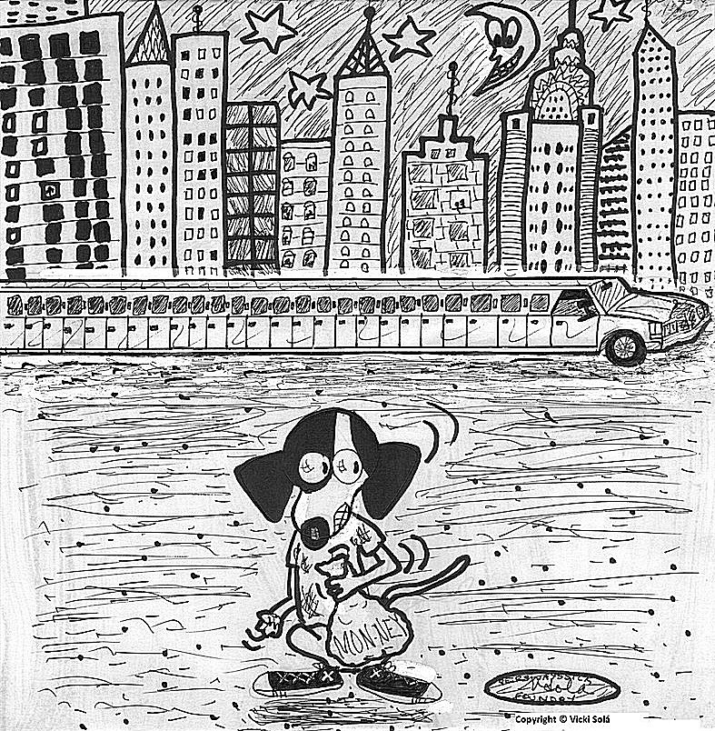 VS: I suppose so. Living a dog’s life—forced to work for and reside with Perswayssick County’s greedy, tail-wagging leader, self-described “business maggot” Diroctor B.Z. Z. Gneeecey—